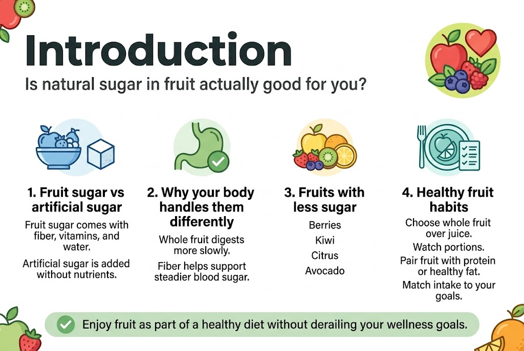We'll break down the real differences between fruit sugar vs artificial sugar and why your body handles them so differently. You'll also discover which fruits have less sugar and how to enjoy fruit as part of a healthy diet without derailing your wellness goals. Finally, we'll cover practical tips for healthy fruit consumption that work with your lifestyle and health needs.